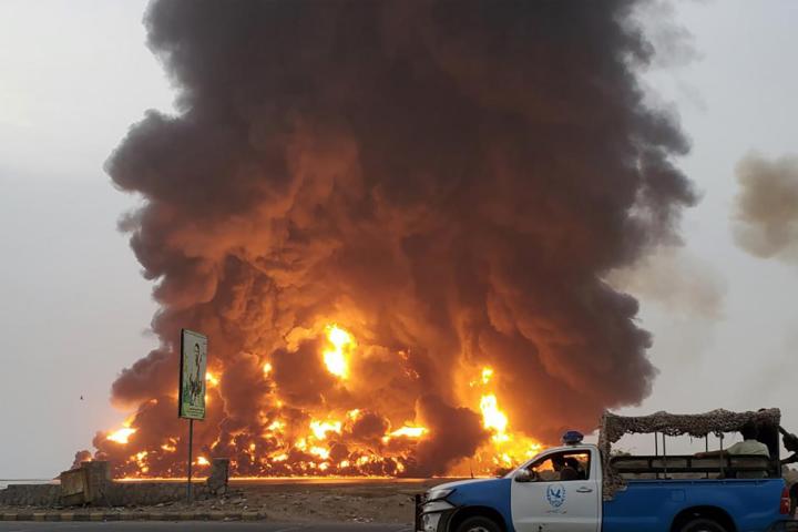 El canal de televisión yemení Al Masira, portavoz de los hutíes, difundió lo que dijo que son "las primeras imágenes de los bombardeos hostiles contra Hodeida", en los que se puede ver un incendio y una columna de denso humo negro que se eleva desde un lugar próximo al mar.
