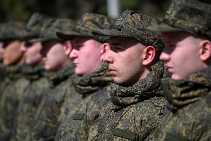 Reclutas rusos llamados al servicio militar, durante una ceremonia antes de partir hacia las guarniciones, en Bataysk (Rostov, Rusia), el 10 de abril de 2025.Sergey Pivovarov / Reuters