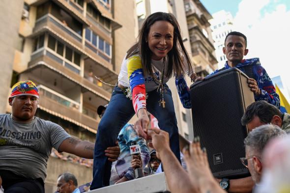 La líder opositora venezolana, María Corina Machado, ha confirmado que ha sido detenida por las "fuerzas represivas del régimen" si bien ahora se encuentra en "un lugar seguro", en sus primeras palabras desde que su equipo de campaña informara de su detención y posterior liberación tras finalizar una manifestación celebrada en Chacao, en el área metropolitana de la capital venezolana, Caracas.