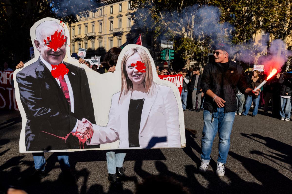 En enero de 2024, su ministro de Asuntos Exteriores y viceprimer ministro, Antonio Tajani, dijo en una entrevista que desde que comenzaron las hostilidades habían "suspendido todos los envíos de sistemas de armas o material militar de cualquier tipo" a Israel. Sin embargo, el ministro de Defensa, Guido Crosetto, aclaró en marzo del mismo año que las exportaciones a Israel habían continuado, pero sólo las entregas en virtud de contratos firmados antes del 7 de octubre. También dijo que estas exportaciones sólo se permitían después de realizar controles para garantizar que no se utilizarían armas contra civiles en Gaza.
