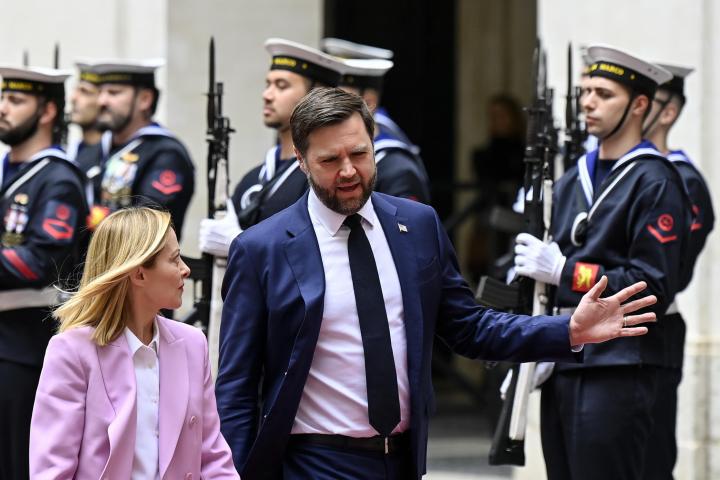 La primera ministra italiana, Giorgia Meloni, recibió este viernes en Roma al vicepresidente de Estados Unidos, J.D. Vance, en una visita oficial que se centró, entre otras cuestiones, en las negociaciones comerciales con la Unión Europea y el cese el fuego en el conflicto entre Rusia y Ucrania.