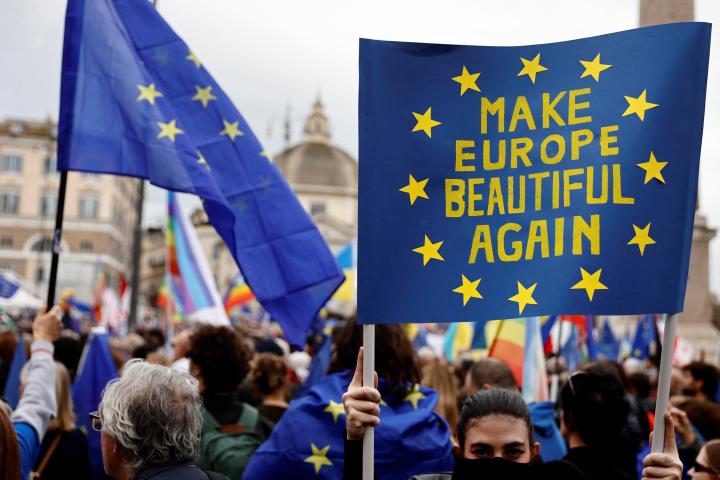 La manifestación "Una plaza para Europa" nació de un llamamiento público lanzado por el periodista y escritor Michele Serra, que propuso una gran reunión no partidista.