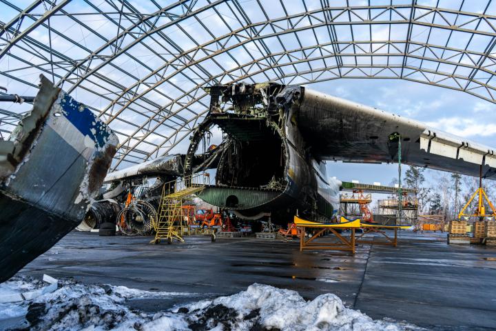 Tras los bombardeos rusos, el avión quedó completamente destruido y según un comunicado de Ukroboronprom, consorcio estatal ucraniano , su reparación podría llegar a costar más de mil millones de dólares y llevaría más de cinco años.