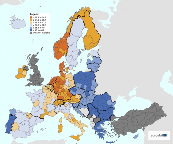 Eurostat hizo públicas las cifras en 2021, pero en Reddit se ha hecho viral un mapa en el que, por colores, se ve claramente cuáles son los países en los que más horas se trabaja semanalmente. Y hay un gran contraste en toda Europa.