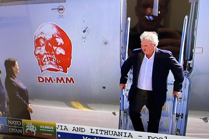 La delegación de Luxemburgo sorprendió ayer a su llegada a Vilna para la cumbre de la OTAN. El primer ministro, Xavier Bettel, llegó en un avión un tanto curioso. En su fuselaje podía verse claramente una calavera roja y la inscripción DM MM.