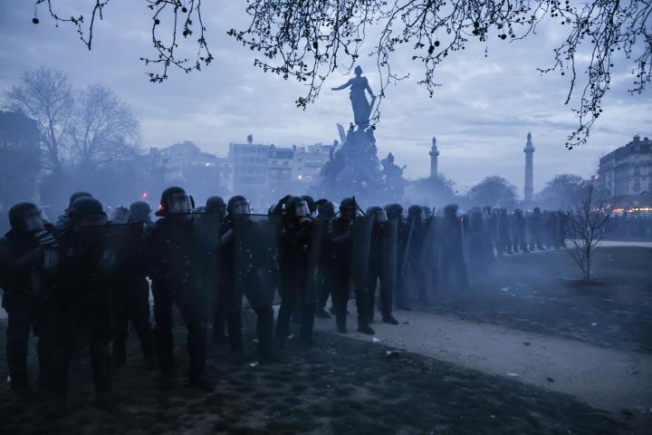 Un policía herido de gravedad en las nuevas protestas en Francia contra la reforma de las pensiones
