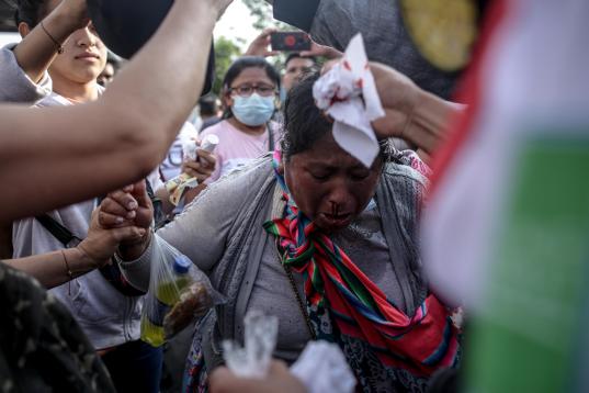 "Estamos protestando de manera pacífica y nos parece indignante que no nos dejen pasar a (el acomodado barrio de) Miraflores. Es el colmo que los señores de Miraflores no nos dejen protestar en contra de esta dictadura porque simplemente se dan cuenta que les favorece. Favorece a todos los grupos de poder del país. En Perú estamos viviendo una dictadura", clamó una manifestante con una bandera nacional en las manos.