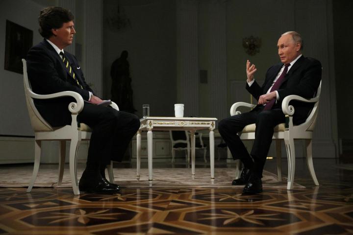 El periodista estrella de la ultraderecha estadounidense, Tucker Carlson -expulsado de la cadena conservadora Fox News por sus ideas radicales- fue el elegido para llevar a cabo esta entrevista de dos horas, que tuvo siempre un tono amable, a veces entre risas, sin que Carlson le hiciera ninguna pregunta incómoda.