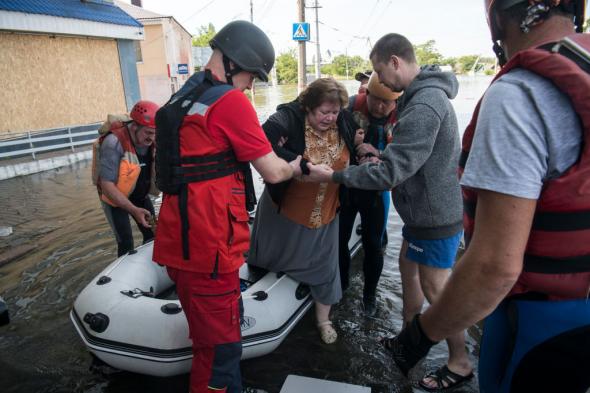 Mientras los voluntarios ucranianos tratan, con todo tipo de embarcaciones, de remontar la corriente del río Dniéper para socorrer a sus conciudadanos en los territorios inundados por la voladura de la presa de Kajovka, continúan los bombardeos sobre Jersón.