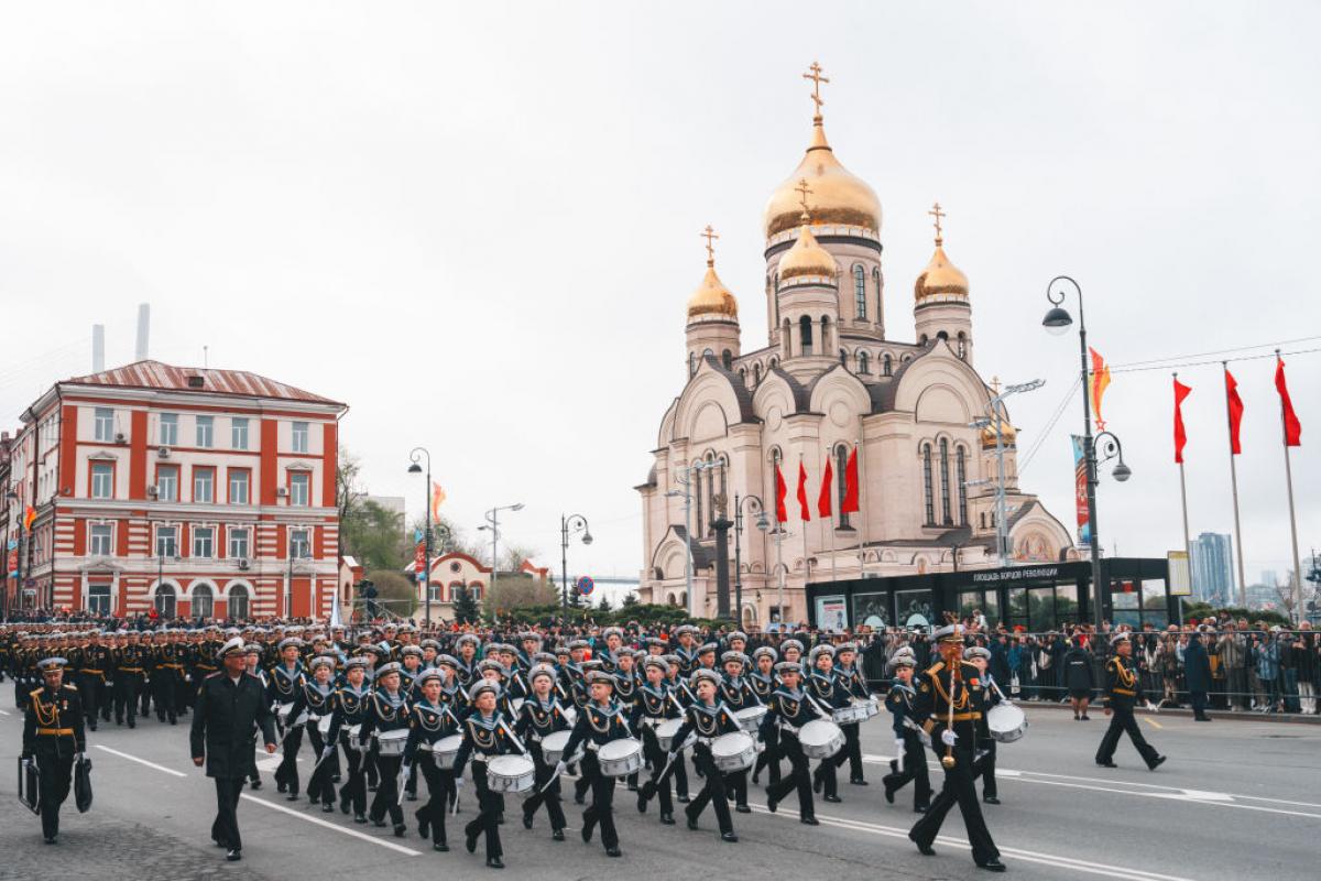 En la región rusa de Vladivostok tuvo lugar un desfile infantil llamado Bisnietos de la Victoria, en el que participaron más 1.500 niños de escuelas primarias vestidos con uniformes que representan las diversas ramas del ejército, según ha informado Ukrayinska Pravda.
