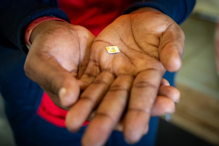 "Tenía miedo de perder mi tarjeta SIM, contiene los números de teléfono de mi familia y de mis seres queridos. La protegí en los momentos más duros del viaje; es el único vínculo que me queda con la gente que dejé atrás en mi país. En Libia, durante la detención, la escondí en las costuras de mi camiseta, y funcionó, no lo encontraron. Todavía lo llevo conmigo, y estoy muy agradecida por ello".
