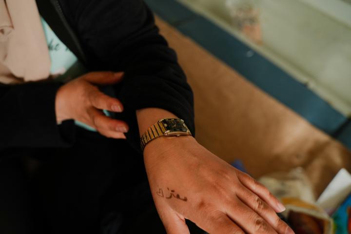 "Mi marido, Moataz, y yo nos conocimos hace mucho tiempo. Me regaló este reloj cuando nos enamoramos. Más tarde nos casamos, y desde entonces no he dejado de llevarlo. Llevé el reloj conmigo cuando nos fuimos a Libia, a pesar de que tenía miedo de perderlo o de que me lo robaran. Para mí era muy importante tenerlo porque simboliza su amor por mí. Cuando estuve en el centro de detención de Libia, tenía alergia en la piel, pero me lo dejé puesto. Lo llevo puesto cuando duermo, cuando me lavo o cuando hago cualquier otra cosa, porque este reloj me une fuertemente a él".