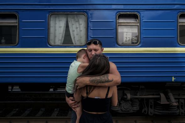 "Evacuación", se puede leer en los carteles en la estación de tren de la ciudad, donde los ciudadanos han subido estos días entre lágrimas y abrazos de despedida. Mientras, para los que se resisten aún a marcharse, el toque de queda entra en vigor al caer la tarde y las calles se quedan desiertas, a excepción de los vehículos militares.