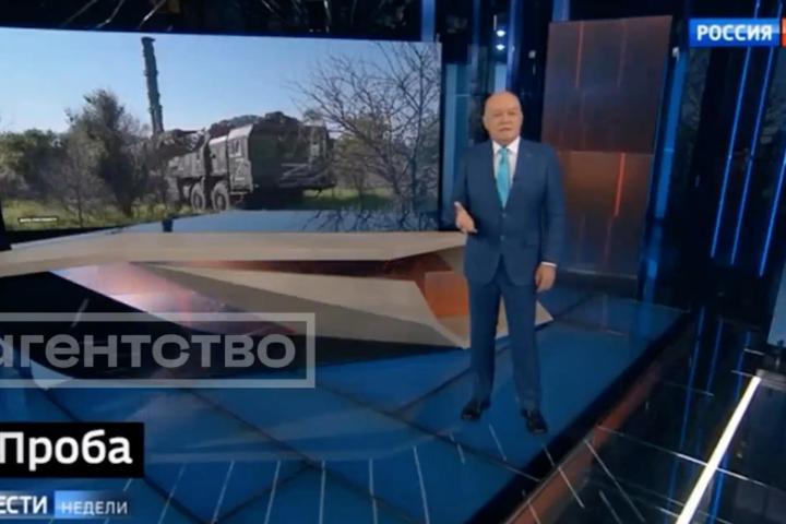 Durante su programa de televisión estatal, Kiselyov mostró vídeos difundidos por el Ministerio de Defensa ruso. Un clip mostraba a las fuerzas nacionales con un sistema móvil de misiles balísticos de corto alcance Iskander. Otro mostraba un bombardero de largo alcance Tu-22M3 y un avión MiG-31 equipado con un misil hipersónico Kinzhal. El tono era grandilocuente y amenazante.