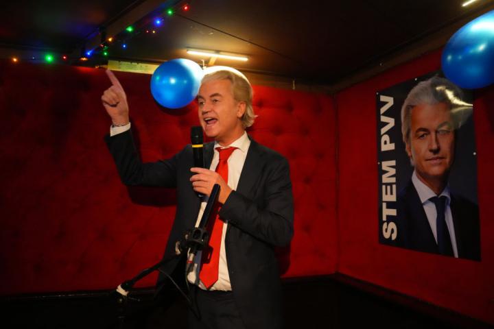 Brazos en alto, micro en mano, luces multicolores, en un pub cerca de La Haya. No empieza el karaoke, sino el terremoto, el que vive la política de Países Bajos desde la noche del miércoles, cuando se supo que Geert Wilders, con su ultraderechista Partido por la Libertad (PVV), había ganado las elecciones. Una sorpresa, a tenor de lo previsto por las encuestas, que lleva a los antiislamistas y eurófobos a ser primera fuerza. Ahora están en disposición de iniciar las negociaciones para formar Gobierno, porque solos no pueden.