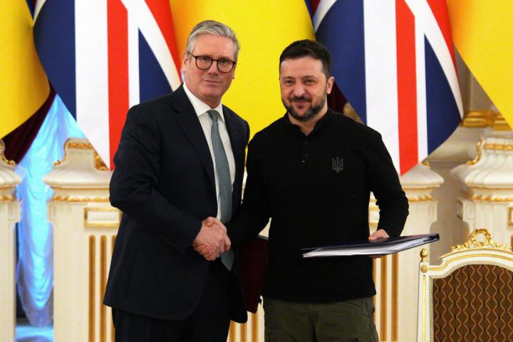 El líder laborista dio una rueda de prensa conjunta con el presidente de Ucrania, Volodímir Zelenski, tras haber viajado hasta la capital ucraniana a firmar un tratado de asociación bilateral por cien años que garantizará a largo plazo la seguridad de ese país, en guerra con Rusia desde 2022.