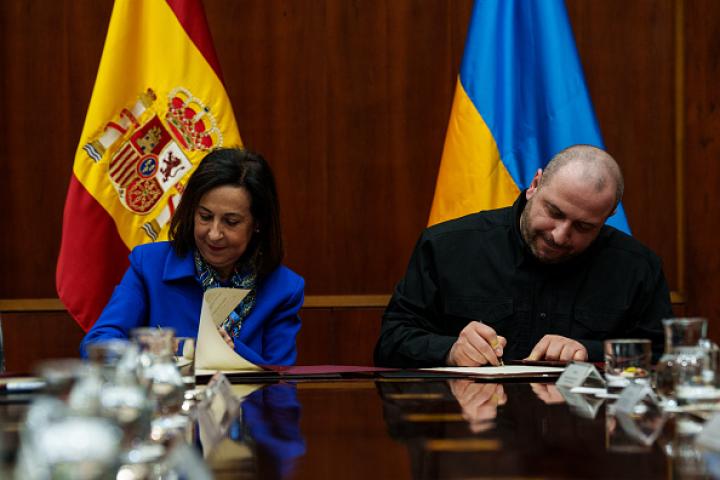 El ministro de Defensa de ucraniano se reúne con empresas españolas para comprar material tras su encuentro con su homóloga española, Margarita Robles.