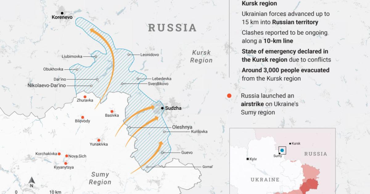Según ha informado este lunes el jefe del Estado Mayor de las Fuerzas Armadas de Ucrania, Oleksander Sirski, Kiev controla ya unos 1.000 kilómetros cuadrados de territorio ruso a raíz de esa ofensiva terrestre en Kursk.