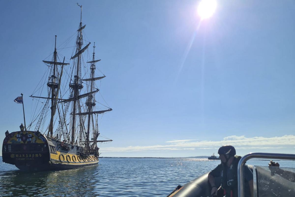 Debido a las sanciones de la Unión Europea a los barcos con bandera rusa, la embarcación, una réplica de un barco del siglo XVIII, no ha sido aceptada por los puertos comunitarios.