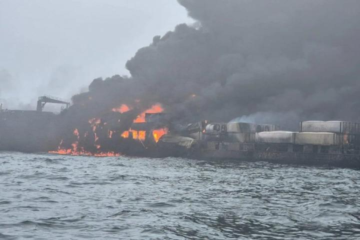 También participan en las labores de rescate una aeronave de ala fija de la Guardia Costera así como embarcaciones cercanas con capacidad de extinción de incendios, ha agregado.