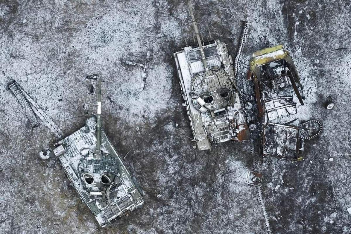 Un dron muestra el cementerio de tanques ruso en Ucrania