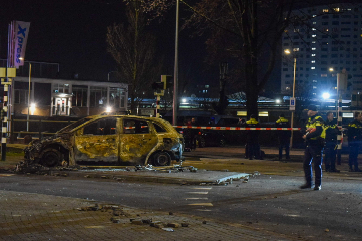 Cuatro agentes de la policía neerlandesa resultaron heridos durante la noche de este sábado en La Haya por los disturbios entre dos grupos enfrentados de eritreos, que derivaron en una batalla campal en plena ciudad, con fuego, vehículos quemados y lanzamientos de palos y piedras.