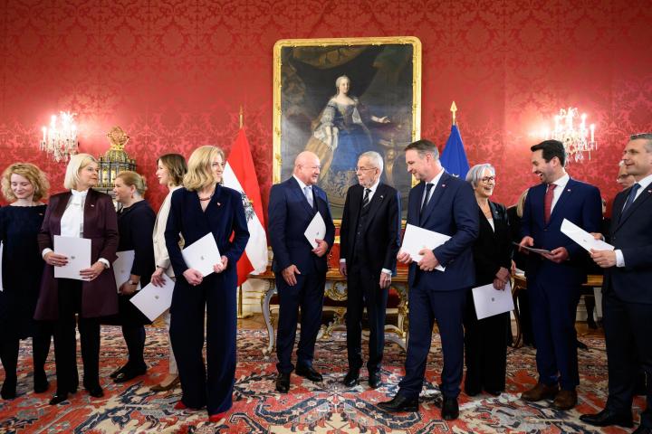 Stocker, líder del ÖVP, es el nuevo canciller federal (jefe de Gobierno), mientras que el jefe de los socialdemócratas, Andreas Babler, es vicecanciller y ministro de Vivienda, Artes, Cultura, Medios de comunicación y Deporte. Por su parte, la presidenta de Neos, es la nueva ministra de Asuntos Exteriores.