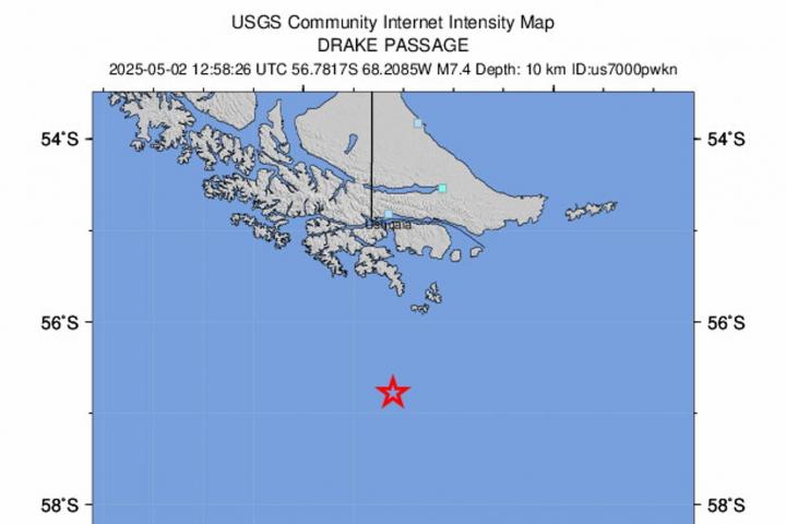 Según información preliminar publicada por el Centro Sismológico Nacional (CSN), el sismo se registró a las 08:58 horas (12:58 GMT) y su epicentro se ubicó a 218,1 kilómetros al sur de Puerto Williams, a una profundidad de 10 kilómetros.