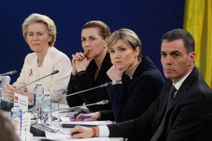 En la cita también ha estado presente el presidente de España, Pedro Sánchez, quien ha evitado pronunciarse sobre la posibilidad de que España contribuya con tropas a una eventual fuerza internacional que garantice la seguridad de Ucrania al término de la guerra y ha pedido centrarse primero en "abrir un proceso genuino de negociaciones de paz" en el que participen tanto Kiev como la UE.