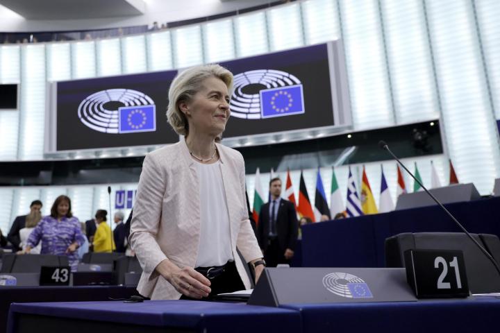 La presidenta de la Comisión Europea, Ursula von der Leyen, ya está en capilla. Este jueves, ha pronunciado un discurso en el Parlamento Europeo con el que espera lograr la confianza de los diputados para revalidar su cargo al frente del Ejecutivo comunitario. Unas palabras muy esperadas, que debían dibujar sus planes y sus anhelos, sus apuestas y sus líneas rojas. No ha sido arrebatador, pero a juzgar por los aplausos en el hemiciclo, puede que sí suficiente para lograr los apoyos que necesita.