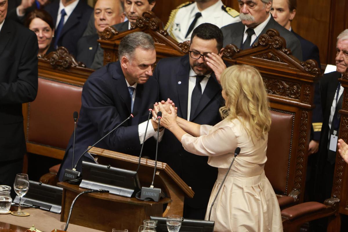 Finalizado el discurso, Orsi se ha reunido con su familia en el Palacio Legislativo, antes de trasladarse a la Plaza Independencia para recibir la banda presidencial de manos del ahora expresidente Luis Lacalle Pou.