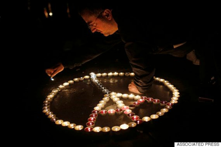 París. Un hombre enciende velas en la plaza de la República. (AP Photo/Laurent Cipriani)