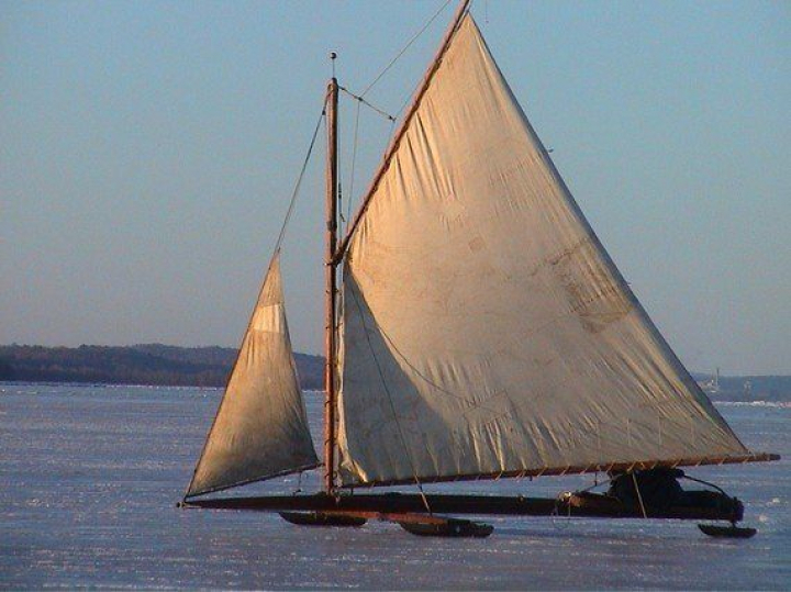 Hay bastantes más embarcaciones de las que me esperaba. Grandotas de madera, de treinta a cincuenta pies, y pequeños monoplaza construidos con fibra de vidrio. Los modernos miden cinco metros, llevan mástiles de diez pies y flotan bien en agua, con lo cual pueden ser utilizados sin problemas sobre capas delgadas de hielo. Por el diseño se puede deducir la antigüedad del barco. Los más primitivos consistían en un cajón apoyado sobre tres patines. Los laterales clavados al cubo y el central libre para manejarlo como timón desde arriba con una caña. La vela fija. A partir de 1853 surgieron los formatos triangulares con aparejos para la vela mayor. El rey de entonces fue el Témpano que alcanzaba los veintiún metros de eslora y tensaba al viento cien metros cuadrados de lienzo. Quedan aún algunas reliquias navales de aquel tiempo traspasadas de generación en generación y guardadas con mimo en los enormes graneros de las granjas del valle.