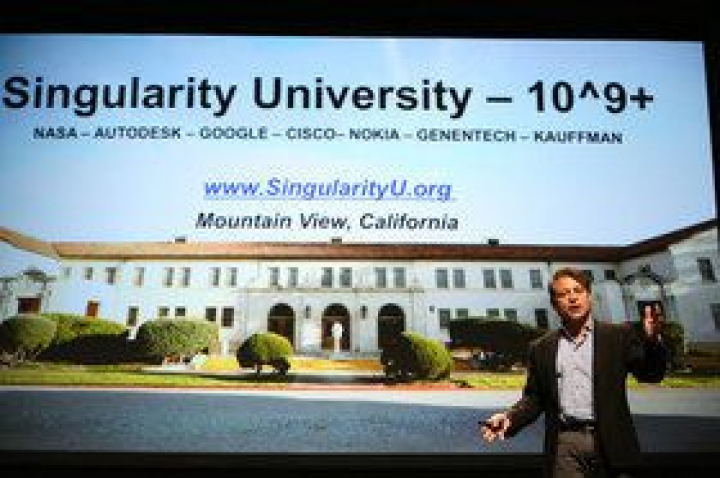 La eminencia en innovación tecnológica Ray Kurzweil se atreve incluso a hacer predicciones detalladas sobre cómo serán los individuos en esas sociedades. Según Kurzweil, en pocas décadas veremos lo siguiente: humanos fusionados con ordenadores de inteligencia artificial (IA). Y esos ordenadores, según Kurzweil, serán incluso más inteligentes que nosotros. Cabe recordar que Kurzweil es el director de la Universidad de la Singularidad, entidad financiada por Google y situada dentro de las instalaciones de la NASA. Lo cierto es que la visión de Kurzweil acaba en un mundo parecido al de Matrix, como él mismo explica. Aunque las predicciones de Kurzweil parezcan de ciencia-ficción, y haya muchas voces que las ponen en duda, hay que reconocer que Kurzweil ha contribuido a algunas de las innovaciones más revolucionarias del siglo XX, y que tiene un apoyo institucional y financiero poderosísimo detrás de él. (Imagen:Peter Diamandis, co-fundador de la Universidad de la Singularidad durante una charla. Fuente: Henk-Jan Winkeldermaat via flickr.com. Licencia: creative commons 2.0.)