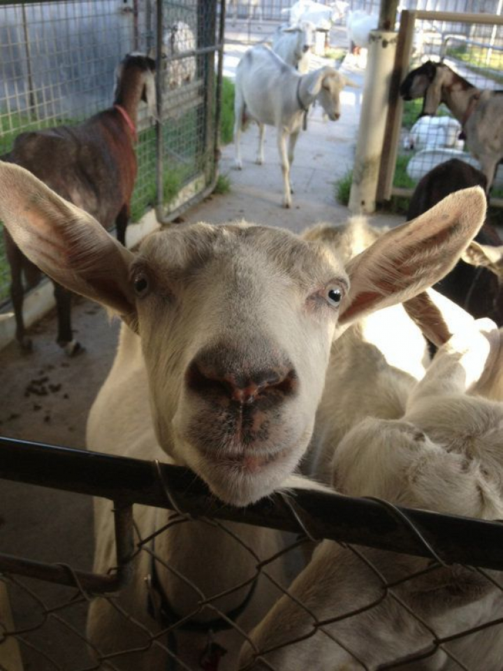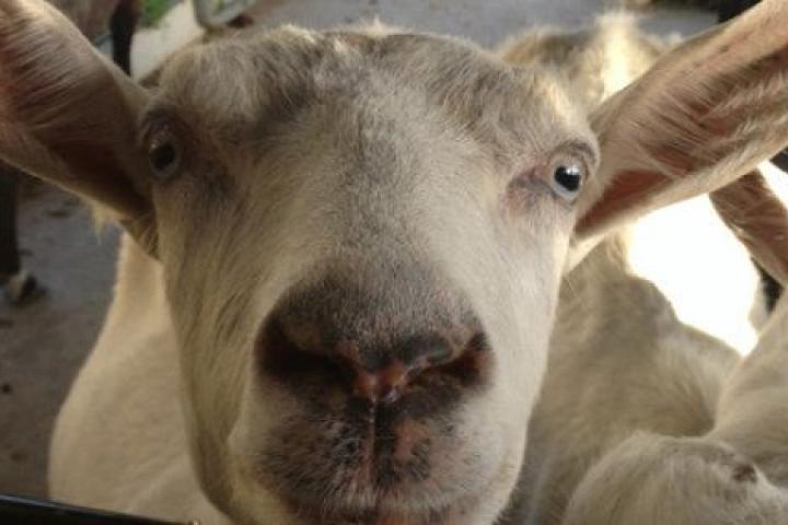 Una de las madrugadoras cabras antes de ser ordeñada. Foto: (c) Guiomar Duarte.