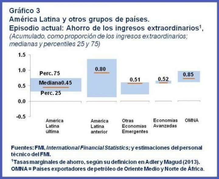 En un estudio reciente, analizamos la historia de booms de términos de intercambio en América Latina durante el período 1970-2012 y cuantificamos los ingresos extraordinarios (es decir, los ingresos "extra" derivados de estas mejoras de los términos de intercambio). También documentamos los patrones de ahorro durante estos episodios y evaluamos la magnitud del "esfuerzo" por ahorrar dichos ingresos extraordinarios.