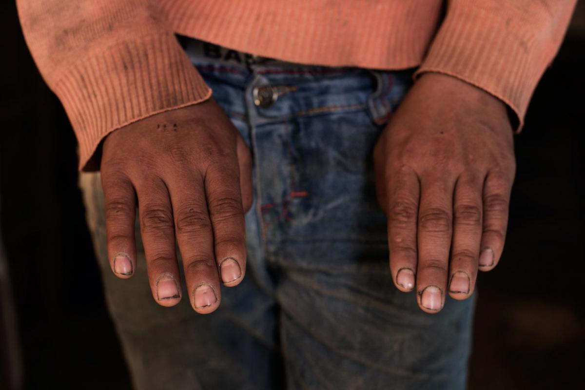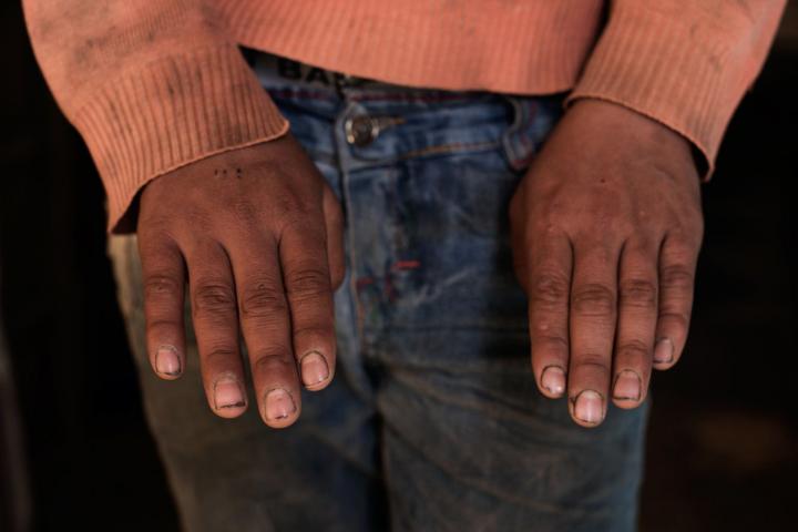 Las manos de Jomaa reflejan las jornadas laborales de 12 horas que hace cada día por 2 dólares/© UNICEF/UN043222/Romenzi