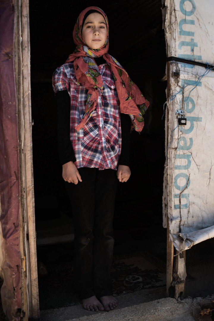 Hadya nunca dejó Siria. Sus padres la casaron con el hermano mayor de Jomaa, de 20 años. En total son siete, el más pequeño un bebé. Jomaa se gana la vida trabajando en Líbano, donde su familia buscó refugio hace cuatro años, para garantizar que tengan un salario fijo. Gana 2 dólares por una jornada de 12 horas de trabajo, de 8 de la mañana a 8 de la tarde.