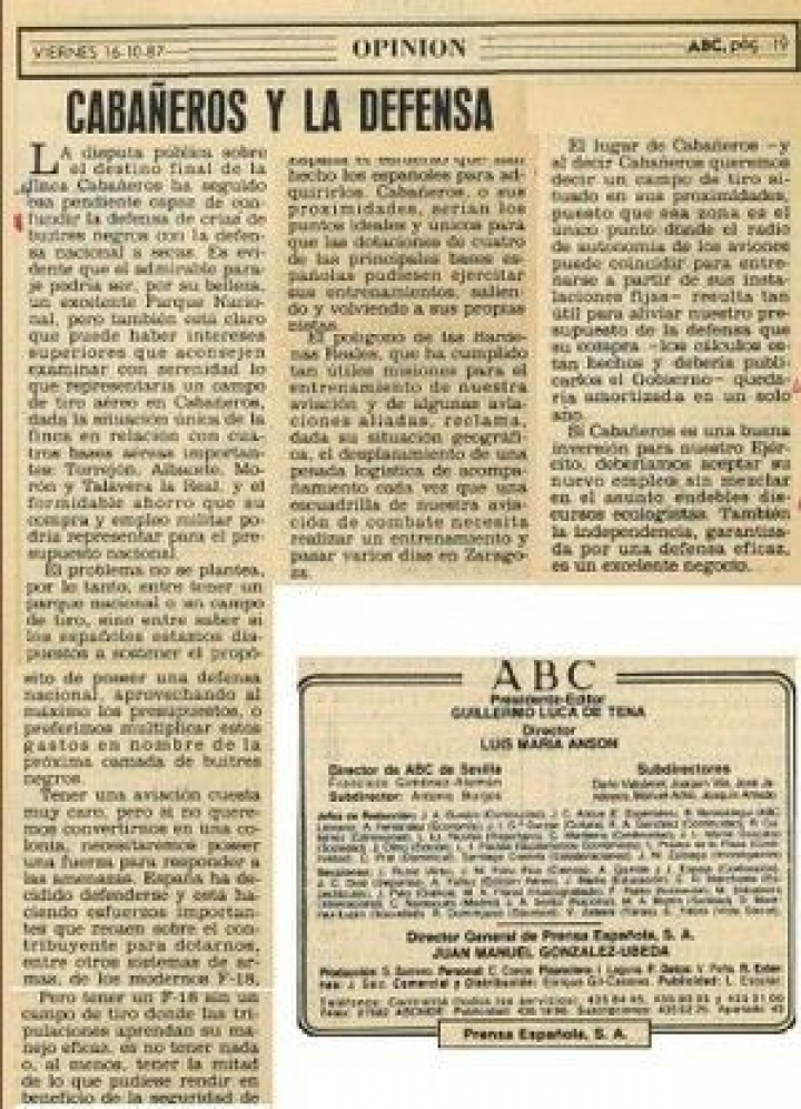 Encuentro, en efecto, un editorial del diario ABC. Está fechado el 16 de octubre de 1987, en plena polémica. Director del periódico, a la sazón, el conocido Luis María Ansón. Se titula "Cabañeros y la defensa", y contiene perlas como las que destaco a continuación. Foto: GEOPIEDRA.