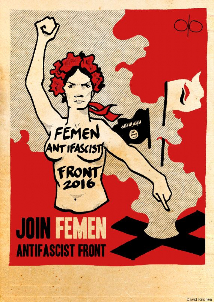 FEMEN anuncia sus objetivos para el año 2016 y lanza un aviso a las formaciones identificadas del fascismo moderno (el islamismo y los partidos políticos de extrema derecha). Lanzamos el Frente Antifascista Femen 2016.
