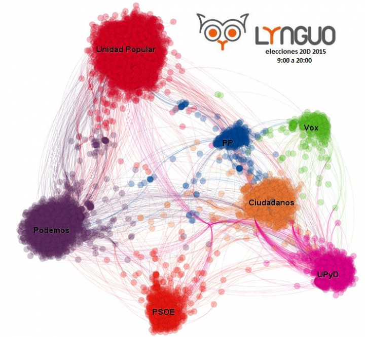 El análisis de estas relaciones informales a partir del análisis de comunidades, y la caracterización en profundidad de estas a partir de sus miembros y contenidos líder, así como de sus connotaciones semánticas (qué palabras y emociones les representan) es el enfoque de la herramienta Lynguo. Si quieres conocer más en detalle nuestros informes sobre la campaña, impacto de los debates y demás claves de las elecciones del 20D en Twitter, escríbenos.