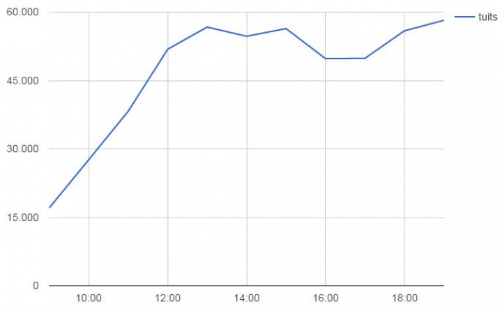 En un análisis realizado durante el domingo electoral entre las horas en que estuvieron abiertos los colegios electorales (de 9 a 20 horas), la actividad en Twitter relacionada con las elecciones arrojó 516.392 tuits por parte de 185.013 usuarios únicos. La conversación fue aumentando a lo largo del día al igual que la participación que, siendo a las 14 horas algo más baja que la de hace cuatro años, aumentó por la tarde para terminar por encima de aquella.