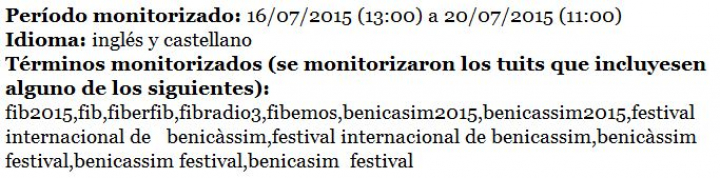 La conversación en Twitter en torno al Festival Internacional de Benicàssim #FIB2015 arroja unos resultados muy interesantes sobre cómo discurrió el festival: en primer lugar, los cabezas de cartel del fin de semana no fueron quienes lideraron la conversación en la red; en segundo lugar, los grupos nacionales tuvieron un papel protagonista, siendo Los Planetas los auténticos líderes del festival.