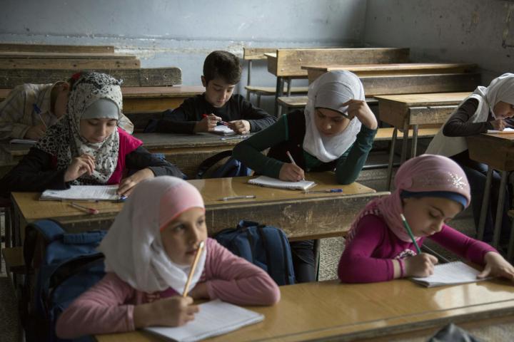 Niñas sirias en un colegio en Alepo (Foto: Getty, AFP).
