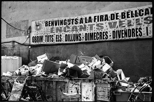 Junto al mercado de los Encantes siempre afloró otro mercado, ilegal e itinerante al compás de la guardia urbana, al que algunos se refieren como el mercado de la miseria. El mercado de la miseria que escapa de la Barcelona futurista y te traslada a la realidad cotidiana de la que un moderno techo de aluminio y zinc no puede resguardar, como tampoco lo hicieron las casi barracas que albergaban hasta ayer el antiguo mercado.