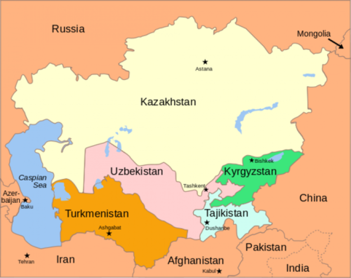 Mapa de Asia Central. Fuente: Wikimedia.