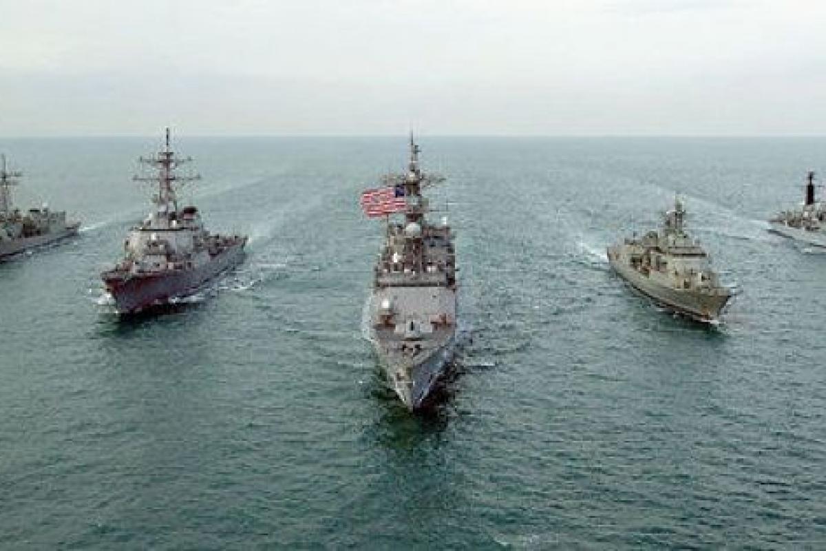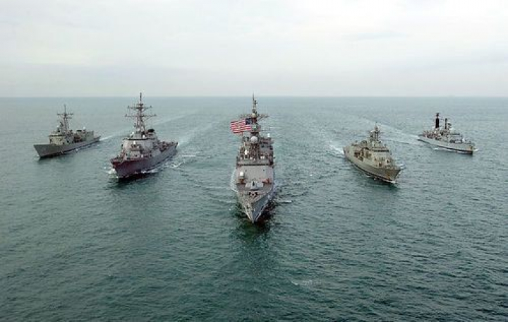 Barcos de la V Flota en un ejercicio con unidades británicas y australianas. Fuente: Wikimedia