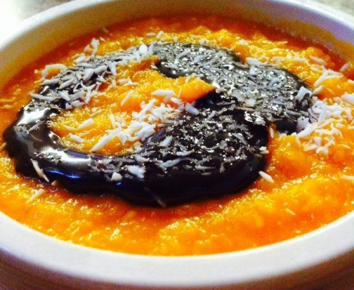 Y por si te dejan esta noche sin postre, esta receta es para ti: crema de calabaza con chocolate y coco, el postre de los campeones. Una auténtica receta de piso de estudiante, sencilla, dulce, colorida y económica, para quedar bien donde la sirvas, sobre la mesa, a los pies del televisor o en los platós de televisión.