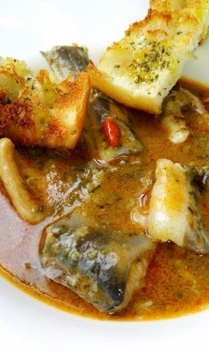 El plato puedes completarlo añadiéndole patata, que cocerán 20' antes de añadir las anguilas.