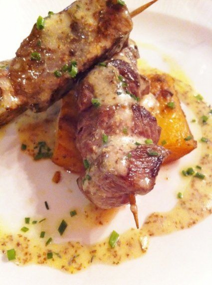 Ya está bien de banderillas en la espalda del profesor. Que las únicas que nos clavemos sean éstas, y nosotros mismos, pero sentados a la mesa y directamente al paladar: Banderillas de ternera escarmentás. La pulla perfecta para olvidar todas las demás. Unos sabrosos tacos de carne ensartados en un pinchito y acompañados de una delicada y deliciosa salsa de mostaza. Una combinación perfecta para no dejar en el plato ni el palo de la banderilla. Que las disfrutes.